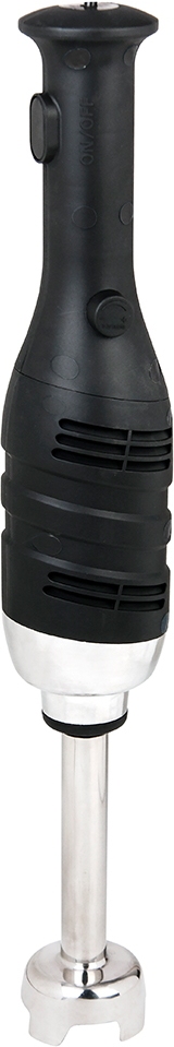 Оснащён вариатором для плавного переключения скорости, что позволяет выбрать оптимальный режим приготовления для каждого типа продукта. Вентилируемый мотор защищает прибор от перегрева. Эргономичная ручка и низкий вес облегчают работу с оборудованием. Рекомендуется к применению на предприятиях общественного питания и торговли, а также в домашних условиях.