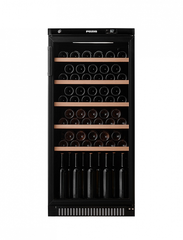 Винный шкаф POZIS ШВ-52 создает особые условия для хранения вин, сохраняя их первозданный вид, вкус и аромат. Тонированный стеклопакет на двери предотвращает проникновение солнечных лучей, ухудшающих качество вина, особая циркуляция воздуха поддерживает нужный уровень влажности, а деревянные полки снижают уровень вибрации от компрессора. Для удобства пользования цифровой дисплей, отображающий температуру, располагается над дверью в зоне постоянной видимости.