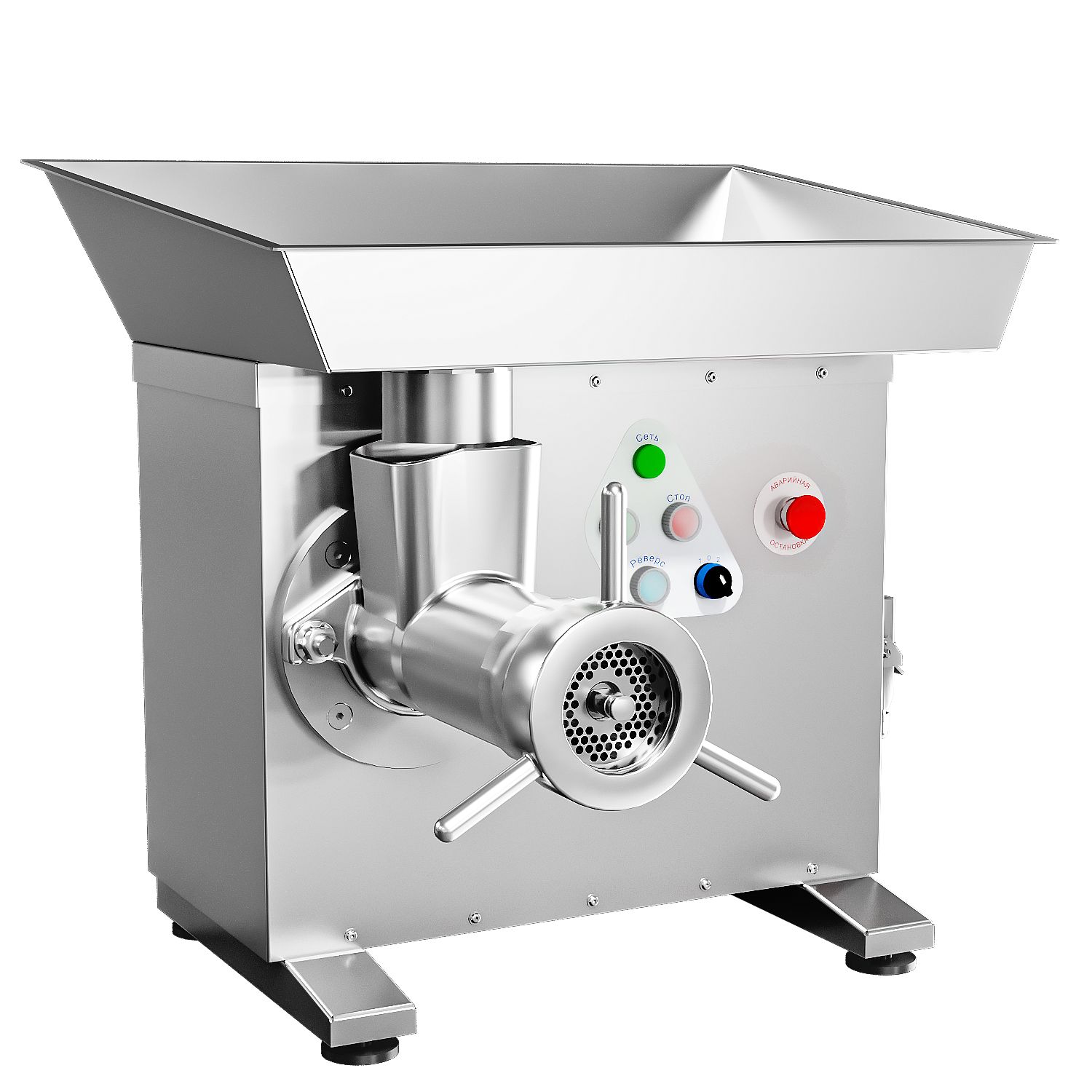 Корпус, шнек, зажимная гайка, лоток и облицовка изготовлены из высококачественной нержавеющей стали.