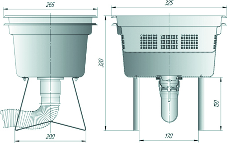 Мезгосбрник для удаления отходов при очистке картофеля, подходит для картофелечисток: К-150, К-200, К-300 и т.д. имеющие сливное отверстие не ниже 320 мм от уровня пола. Все металлические детали выполнены из нерж стали.
