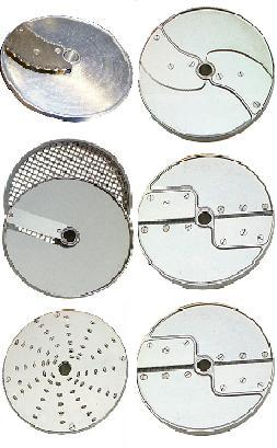 В комплекте диски: нарезка 2 и 4 мм, терка 2 мм, соломка 4х4 и 8х8 мм.