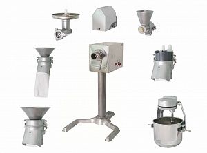 Универсальная кухонная машина ТОРГМАШ УКМ-П полный комплект: (мясорубка, овощерезка, взбив. просеиватель, рыхлитель мяса, измельч. сухарей) используется для переработки пищевых продуктов: нарезки сырых и вареных овощей, шинковки и протирания овощей и фруктов на предприятиях общественного питания и торговли. Приводной механизм оснащен двухскоростным электродвигателем. Машина упаковывается в деревянный ящик.