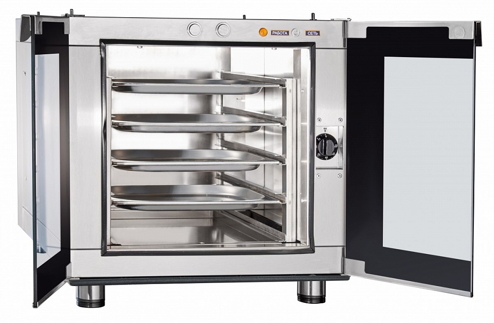 Основной режим работы - расстойка при температуре 45 °С. Лоток для сбора конденсата. Полностью из нержавеющей стали. Регулируемые по высоте ножки.