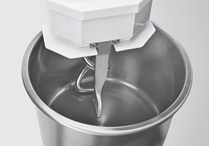 Корпус выполнен из высококачественной конструкционной стали с полимерным покрытием, металлические детали машины, контактирующие с продуктом во время замеса (спираль, дежа, нож) - из нержавеющей стали AISI 304.