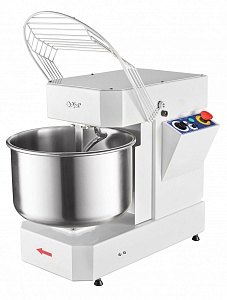 Корпус выполнен из высококачественной конструкционной стали с полимерным покрытием, металлические детали машины, контактирующие с продуктом во время замеса (спираль, дежа, нож) - из нержавеющей стали AISI 304.