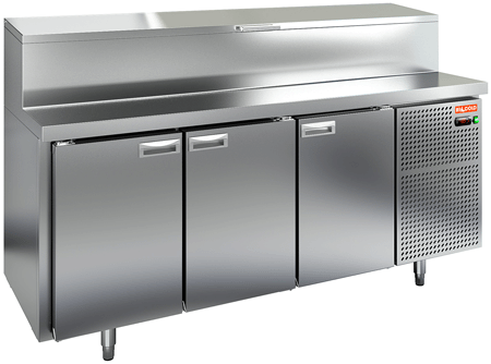Охлаждаемый стол для пиццы HICOLD PZ2-111/GN (1/6) выполнен из нержавеющей стали . Верх стола накрыт столешницей.