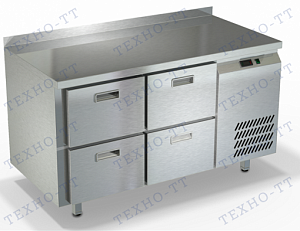 Морозильный стол из нержавеющей стали, четыре ящика, борт 50 мм., объём стола 350 литров, температурный режим -10...-18, напряжение 220В, мощность 575 Вт