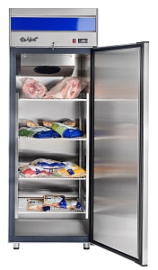 Шкаф холодильный среднетемпературный ШХс-0,7-01 нерж. с верхним расположением агрегата предназначен для кратковременного хранения и охлаждения пищевых продуктов и напитков на предприятиях общественного питания и торговли.