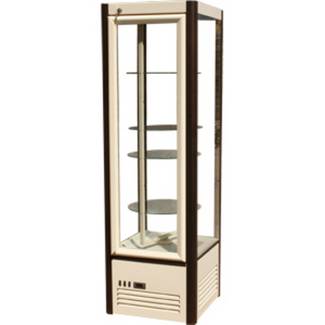 Кондитерская витрина Carboma R400Cвр Люкс используется на предприятиях общественного питания и торговли для демонстрации, охлаждения и кратковременного хранения тортов, пирожных и других кондитерских изделий. Модель оснащена 4-х сторонним остеклением, 4 крутящимися полками, которые можно устанавливать на разные уровни, замком и регулируемыми колесами высотой 100 мм.