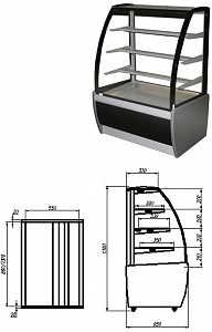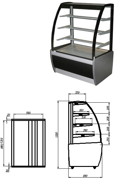 Витрина кондитерская ВХСв-0,9д Carboma (техно) - используется на предприятиях общественного питания и торговли для демонстрации, охлаждения и кратковременного хранения тортов, пирожных и других кондитерских изделий. Модель оснащена изогнутым фронтальным и прямыми боковыми стеклами, 3 охлаждаемыми фиксированными полками и регулируемыми ножками высотой от 30 до 50 мм. Основание и декоративные панели выполнены из стали, боковины - из пластика с пенополиуретановой теплоизоляцией, раздвижные задние створки - из оргстекла.