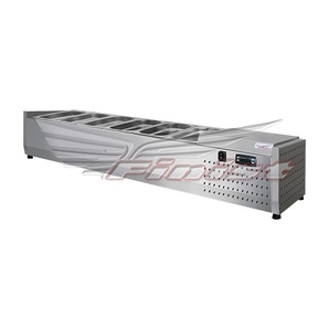 • Холодильная настольная витрина ToppingBox открытая предназначена для демонстрации и кратковременного хранения подготовленных начинок/топпингов (для пиццы, блинов, лапши WOK), а также мясных изделий и полуфабрикатов на предприятиях быстрого питания и торговли. Пониженная температура позволяет в течение длительного времени сохранять вкусовые качества, внешний вид иструктуру продуктов. Прибор оснащен статическим охлаждением. Гастроемкости GN1/3 и GN1/2 глубиной 150мм приобретаются отдельно. Холодильная витрина - хорошее дополнение к холодильному столу или блинной станции.