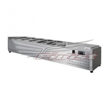• Холодильная настольная витрина ToppingBox открытая предназначена для демонстрации и кратковременного хранения подготовленных начинок/топпингов (для пиццы, блинов, лапши WOK), а также мясных изделий и полуфабрикатов на предприятиях быстрого питания и торговли. Пониженная температура позволяет в течение длительного времени сохранять вкусовые качества, внешний вид иструктуру продуктов. Прибор оснащен статическим охлаждением. Гастроемкости GN1/3 и GN1/2 глубиной 150мм приобретаются отдельно. Холодильная витрина - хорошее дополнение к холодильному столу или блинной станции.