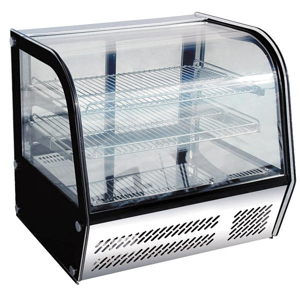 Компактные размеры позволяют размещать витрину на барных стойках и прилавках. Витрина имеет гнутое стекло, LED-подсветку. Оснащена 2 полками-решетками.