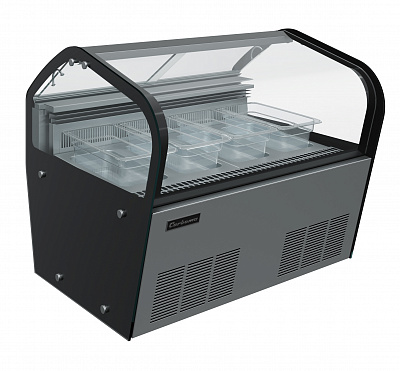 Витрина для мягкого мороженого JOY отлично впишется в любой дизайн помещения. Большая производительность достигается благодаря использованию энергоэффективного хладагента R290. Витрина имеет изогнутый фронтальный и боковые стеклопакеты. Прекрасная видимость ассортимента обеспечивается за счет приподнятых гастроемкостей, а светодиодное освещение внутри витрины эффектно подсветит экспозиционную поверхность и позволит ярко демонстрировать десерт в любое временя суток.