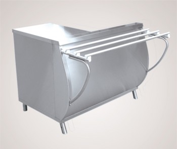Кассовая кабина предназначена для установки на нем кассового аппарата и расчета с потребителям. Внизу имеется дополнительная полка и розетка 220В для подключения кассового аппарата. Путем несложного монтажа можно установить кассовую кабину как в левом, так и в правом исполнении. Направляющие для подносов входят в комплект поставки. Прилавок имеет регулируемые по высоте ножки.