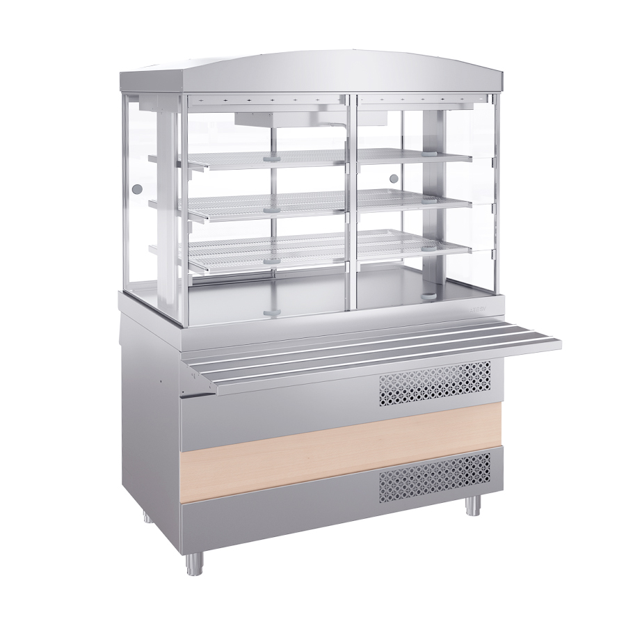Витрина, стенки которой изготовлены из стеклопакетов, имеет высокий уровень теплоизоляции, что способ- ствует экономии электроэнергии.