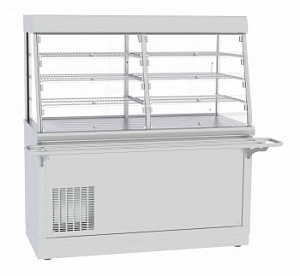 Прилавок-витрина холодильный предназначен для хранения, демонстрации и раздачи холодных закусок, третьих блюд и охлажденных напитков потребителю. ВНИМАНИЕ: Линия раздачи "HOT-LINE" по умолчанию изготавливается с панелями из нержавеющей стали! Дополнительно можно приобрести комплект торцевой (правый и левый) и комплект колес.