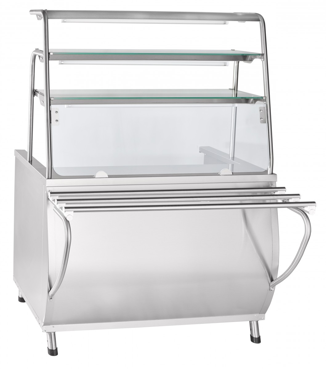 Мармит устанавливают отдельно или в составе линии раздачи питания в столовых самообслуживания.