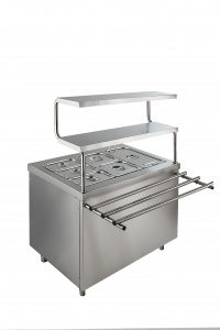 Мармит вторых блюд МАСТЕР МЭВ-15/7Н. Материал - полностью нерж. сталь. Полка, гастроемкости и направляющая входят в комплект.