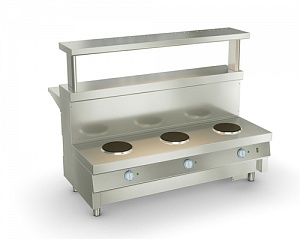 Максимальная емкость котла, на установку которого рассчитано оборудование, составляет 50 литров. Мармит выпускается в варианте на три конфорки.