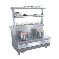Линия раздачи позволяет организовать питание первыми, вторыми и холодными блюдами, горячими и холодными напитками, кондитерскими изделиями, обслуживая клиентов с высоким качеством и скоростью.
