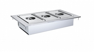 Мармит предназначен для размещения в нем 3-х гастроемкостей GN 1/1 максимальной глубиной 150 мм.