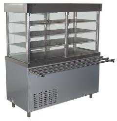 Прилавок-витрина Rada ПВ-15/7 линии раздачи Школьник предназначен для демонстрации, охлаждения и кратковременного хранения десертов, салатов и других блюд. Прибор подходит для использования в кафе с системой самообслуживания и в крупных супермаркетах.