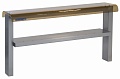 Изготовлена из пищевой нержавеющей стали. Полка оснащена светильником, освещающим столешницу. Конструкция сборная, бескаркасная. В верхней части полки располагается гнутое стекло. Двухъярусная полка имеет защитное стекло, предотвращающее попадание грязи на продукты.
