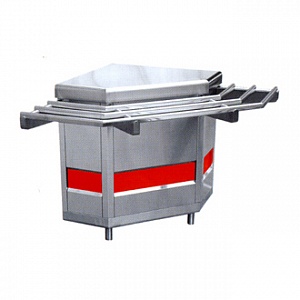 • Модуль поворотный внешний служит в качестве нейтрального стола, одновременно позволяя выстраивать технологическую линию под углом 90*, не разрывая линию направляющих для подносов. Все элементы модуля изготовлены из нержавеющей стали. В комплект входят направляющие для подносов. Ножки регулируются по высоте.