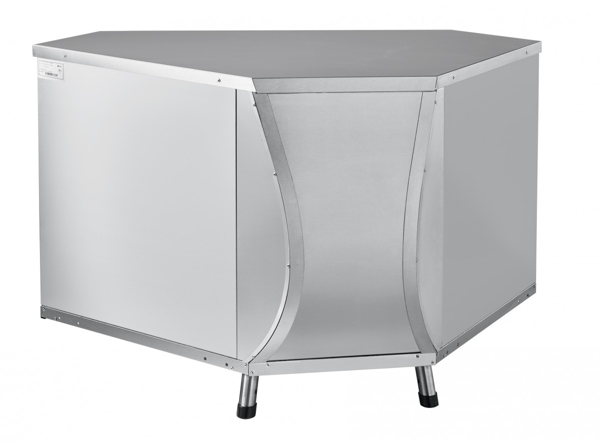 • Модуль поворотный внешний служит в качестве нейтрального стола, одновременно позволяя выстраивать технологическую линию под углом 90*, не разрывая линию направляющих для подносов. Все элементы модуля изготовлены из нержавеющей стали. В комплект входят направляющие для подносов. Ножки регулируются по высоте.