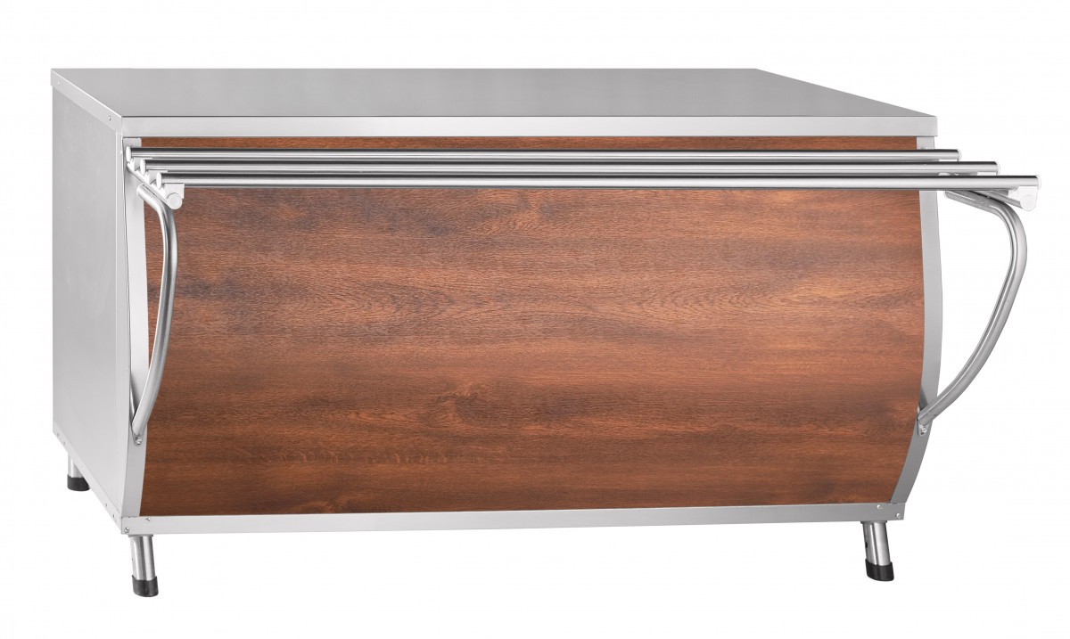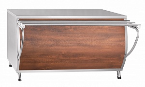 Прилавок для горячих напитков предназначен для кратковременного хранения хлебобулочных и кондитерских изделий, а также для установки на его столе электронагревательный прибор (электрочайник) с напитками. Используется на предприятиях общественного питания самостоятельно или в составе технологических линий