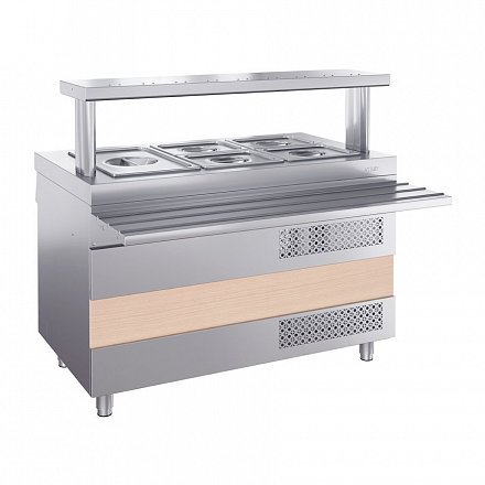 Охлаждаемый стол с отверстием под полку предназначен для кратковременного хранения и раздачи холодных напитков, салатов, кисломолочных продуктов и других блюд, требующих хранения в охлажденном состоянии. Блюда и продукты могут размещаться в охлаждаемой ванне стола в посуде, в фабричной упаковке или в гастроемкостях.