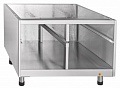 Открытый с лицевой стороны модуль. Направляющие для двух гастроемкостей размером GN 1/1. Полностью из нержавеющей стали. Регулируемые по высоте ножки.
