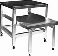 Подставка под электрооборудование изготовлена из шлифованной нержавеющей стали. Каркас может быть выполнен из оцинкованной или нержавеющей стали. Ножки оснащены регулируемыми по высоте полиамидными опорами для компенсации неровностей пола.