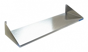 Полка настенная ПН-411/1500 сплошная, 1500*300*145 - предназначена для хранения посуды, различного инвентаря и сухих продуктов на предприятиях общественного питания и торговли. Изделие крепится к стене при помощи 2 боковых кронштейнов, которые могут располагаться как сверху, так и снизу полки. Разборный каркас выполнен из нержавеющей стали AISI 430.