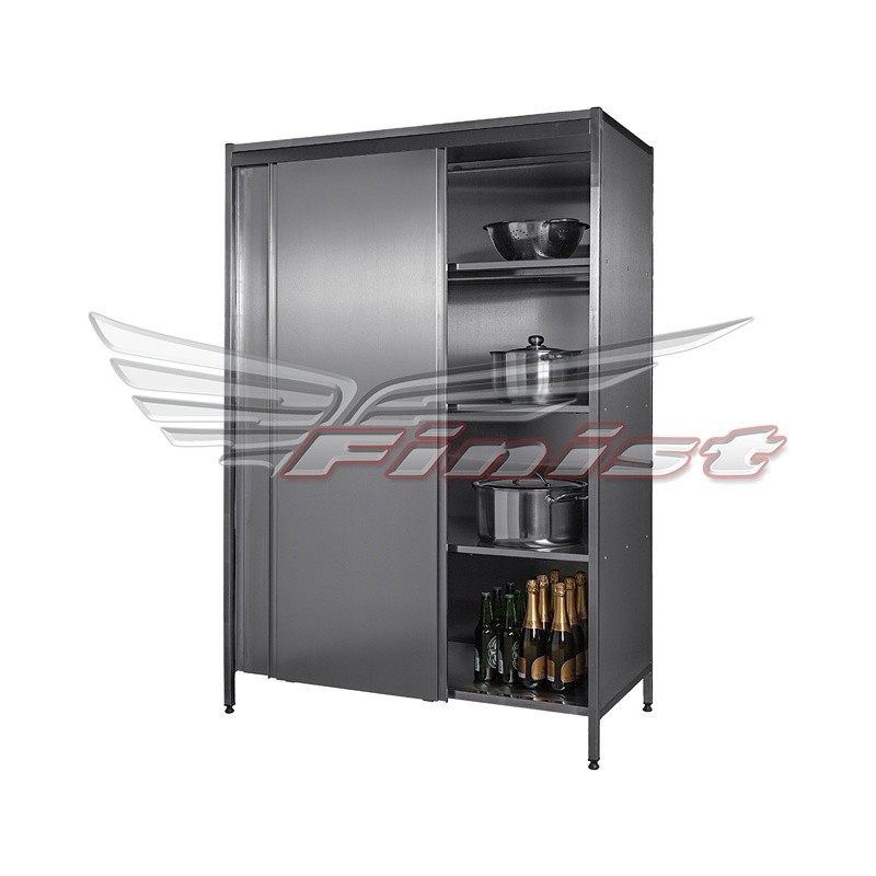 Шкаф выполнен на каркасе из нержавеющей трубы 25*25 мм, все остальное полностью из импортной нержавеющей стали. Каркасное исполнение шкафа позволяет повысить надежность конструкции. Двери распашные. В стандартном исполнении шкаф комплектуется тремя промежуточными полками. Благодаря каркасу из трубы 25*25 мм увеличен запас прочности шкафа. Возможно изготовление комбинированных шкафов (нержавеющая сталь + оцинкованная сталь). Отличительной особенностью данного шкафа является наличие вентиляционных отверстий в боковых стенках.