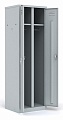 Шкаф металлический разборный двухсекционный, предназначен для хранения сменной одежды. В стандартную комплектацию каждой секции входят съемная полка для головного убора, перекладина для вешалки и крючки для одежды, врезной замок. Шкаф может комплектоваться полками для обуви и регулируемыми опорами (в комплект не входят). Полимерное порошковое покрытие светло-серого цвета (RAL 7035).