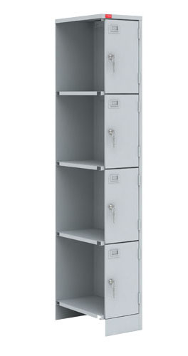 Модульные разборные шкафы ШРМ-14-М – особенность этих шкафов в возможности составлять к основной секции ШРМ-28-М дополнительных ряды с неограниченным количеством секций. Шкаф ШРМ-14М является промежуточной секцией модульного ряда. Дверь каждого отделения шкафа снабжена индивидуальным замком врезного типа.