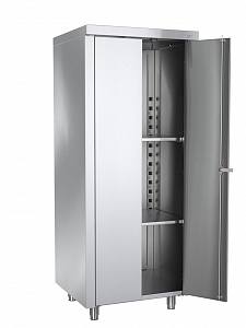 Кухонный шкаф ATESY ШЗК-С-600.600-02-Р используется на предприятиях общественного питания и торговли для хранения продуктов питания, столовой и кухонной посуды и инвентаря. Модель оснащена распашными дверцами с замком и кромкой с подгибом, что полностью исключает возможность получения травмы при эксплуатации и санитарной обработке изделия. Конструкция выполнена из нержавеющей стали AISI 430.
