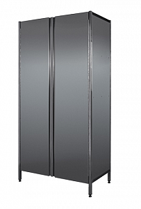 Шкаф нержавеющий с распашными дверями или типа купе предназначен для хранения посуды, инвентаря, упакованных пищевых продуктов и хлеба. Шкаф выполнен на каркасе из нержавеющей трубы 25*25 мм, все остальное полностью из импортной нержавеющей стали. Каркасное исполнение шкафа позволяет повысить надежность конструкции В стандартном исполнении шкаф комплектуется тремя промежуточными полками. Имеет регулируемые по высоте ножки. Благодаря каркасу из трубы 25*25 мм увеличен запас прочности шкафа.