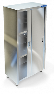 Кухонный шкаф Техно-ТТ СТК-163/900 предназначен для хранения посуды, различного инвентаря и сухих продуктов на предприятиях общественного питания и торговли. Модель оснащена 3 полками, 2 дверями-купе и регулируемыми по высоте ножками, что позволяет компенсировать неровности пола. Сварной каркас и полки выполнены из нержавеющей стали AISI 304, задняя стенка с вентиляционными отверстиями - из нержавеющей стали AISI 430.