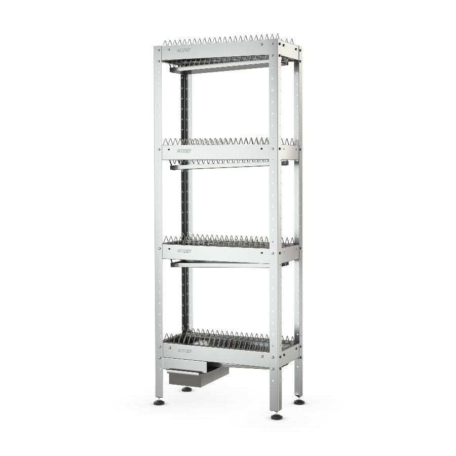 Стеллаж СтПЭ 1500*700*2000, 5 полок сплош. нерж. 0,8мм, каркас сварн. труба краш. 25*25, нижн. полка Н500мм от пола, внизу обв. с 3-х ст.