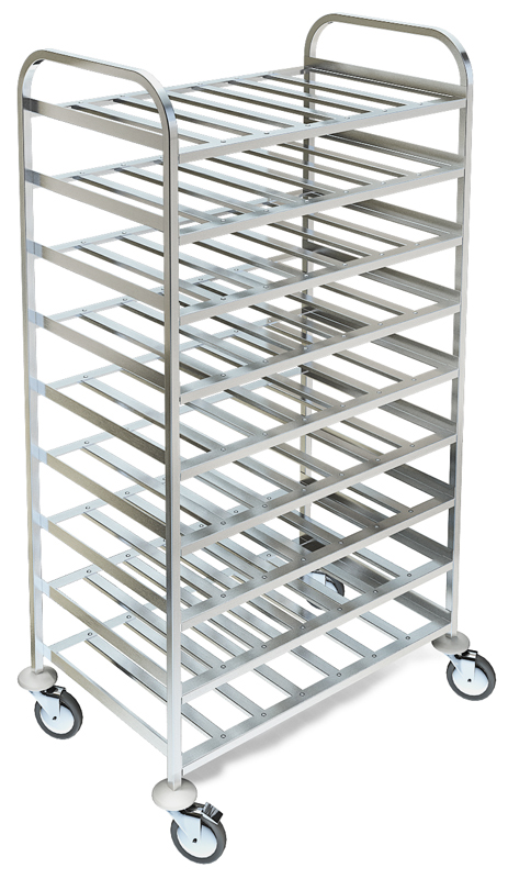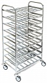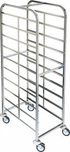 Стеллаж-шпилька для противней изготовлена из пищевой импортной нержавеющей стали марки AISI 304. Укомплектована обрезиненными поворотными колёсами диаметром 125 мм - два колеса с тормозом и пластиковым отбойником. Используются для перевозки и хранения противней.