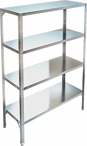 Кухонный стеллаж Техно-ТТ СТР-324/1500 предназначен для хранения посуды, различного инвентаря и сухих продуктов на предприятиях общественного питания и торговли. Модель оснащена регулируемыми по высоте полками и ножками, что позволяет компенсировать неровности пола. Разборный каркас выполнен из уголка 40х40 мм из нержавеющей стали AISI 430 толщиной 2 мм, сплошные полки - из нержавеющей стали AISI 430.