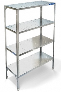 Стеллаж СТР-524/1206 представляет собой сборно-разборную конструкцию, включающую в себя четыре полки и четыре стойки. Универсальность конструкции позволяет осуществлять сборку стеллажей легко и быстро. Перфорированные полки произведены из качественной нержавеющей стали AISI 430. Данная марка стали имеет высокую прочность, а также коррозионную стойкость за счет высокого содержания хрома и низкого содержания углерода.