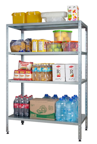 • Стеллаж СтПЛ 600*500*1800 4 полки сплош. нерж. 0,8мм, стойки уголок оцинк.