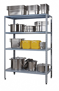 Стеллажи данного вида имеют сборно-разборную конструкцию и собираются при помощи болтовых соединений. Стеллажи могут поставляться со следующими вариантами полок: сплошная, перфорированная и «решетка».