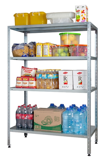 Стойки выполненны из оцинкованной стали. Стеллаж предназначен для размещения, складирования и хранения товаров, сырья, продуктов в торгово-выставочных залах, производственных помещениях и других объектах.