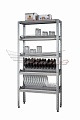 Стеллаж предназначен для использования в технологических помещениях предприятий общественного питания для сушки кухонной посуды и инвентаря. Полки выполнены из пищевой нержавеющей стали. Каркас стеллажа разборный. Стеллажи имеют 5 полок, две из которых предназначены для сушки тарелок, а две для сушки стаканов.
