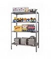 Стеллаж производственный серии «Нормал» СтПН.Стойки выполненны из нержавеющей стали. Стеллаж предназначен для размещения, складирования и хранения товаров, сырья, продуктов в торгово-выставочных залах, производственных помещениях и других объектах.
